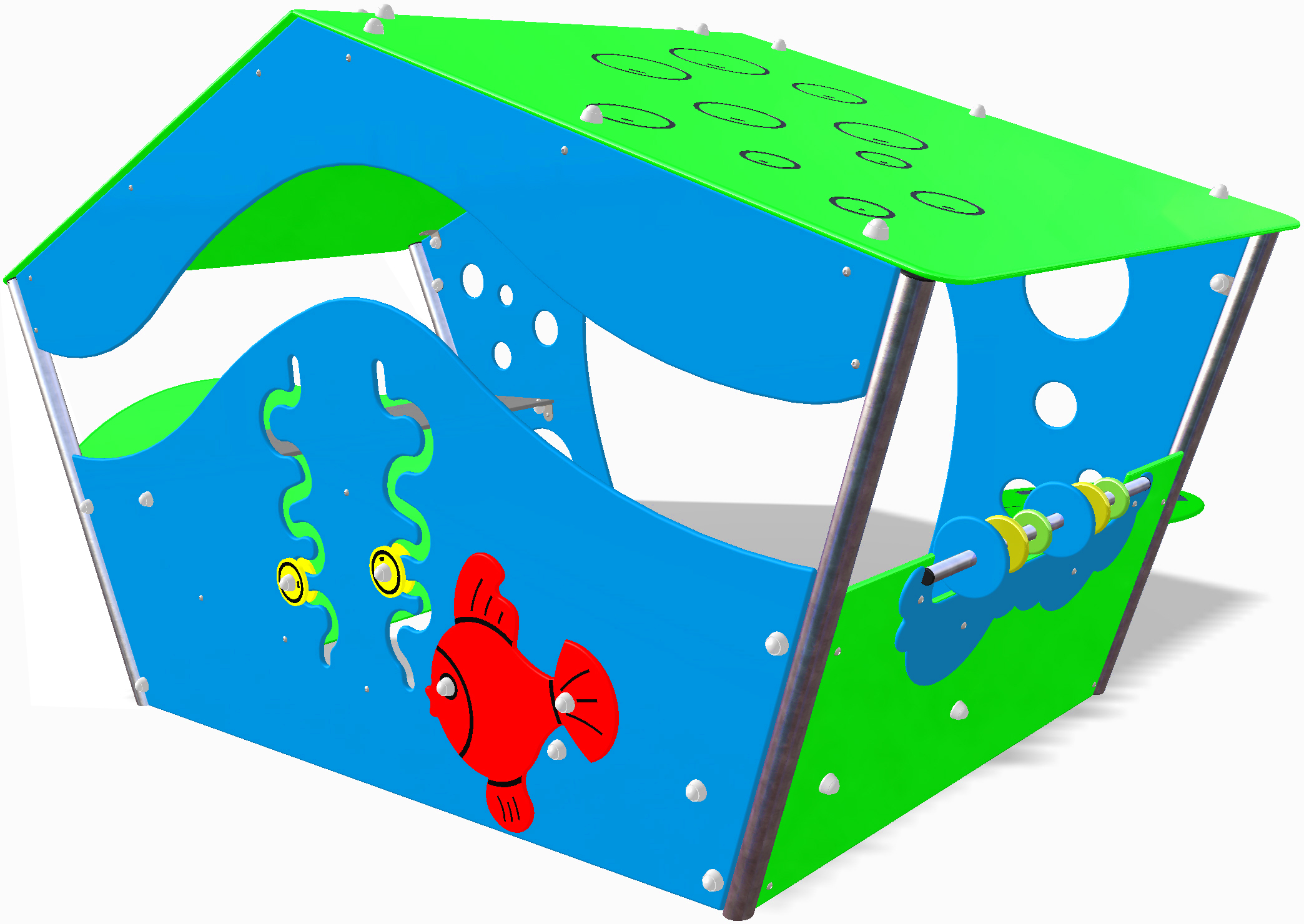 Offrez aux enfants un espace d’éveil unique avec la maisonnette de jeux Bulbizarre. Conçue pour stimuler l’imagination et favoriser la socialisation, cette structure ludique au design asymétrique et moderne transforme chaque aire de jeux en un véritable petit monde sous-marin.