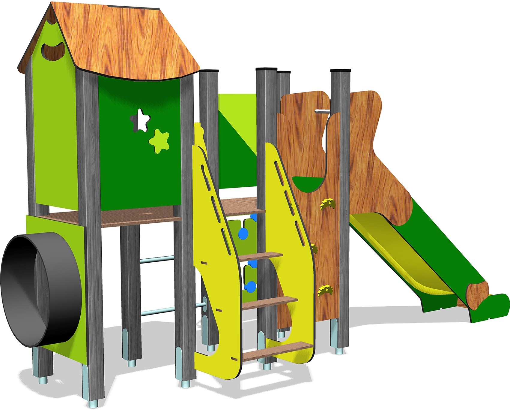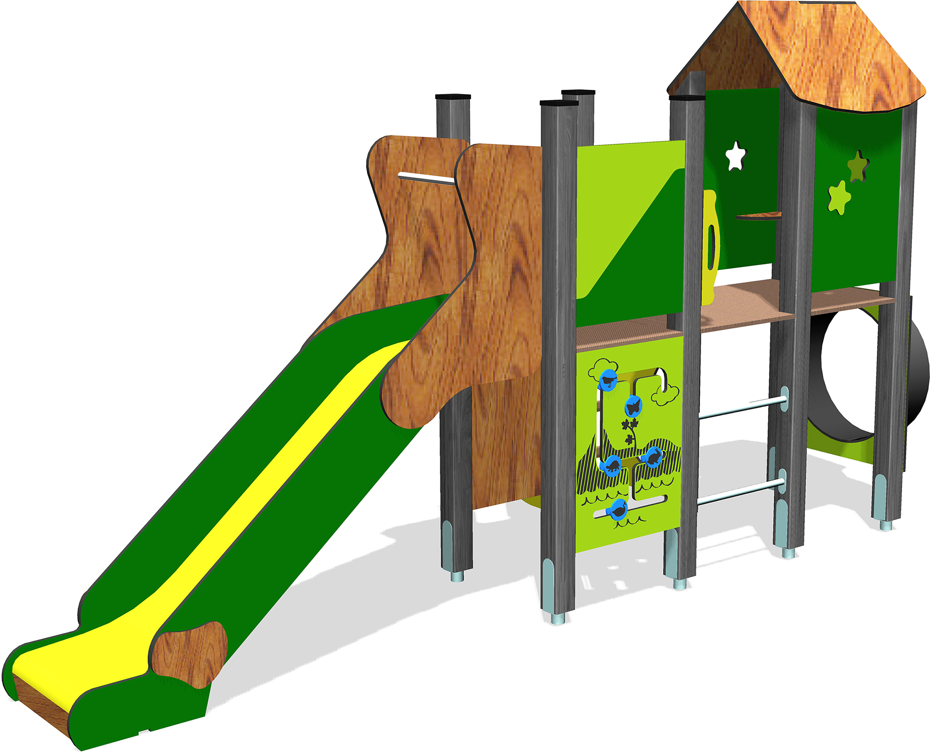 Offrez aux enfants de 2 à 8 ans un véritable espace d’éveil et d’aventure avec cette structure multi-activités aux tons naturels. Alliant esthétisme et robustesse, ce module s’intègre parfaitement dans les parcs, cours d’écoles ou aires de jeux résidentielles.
