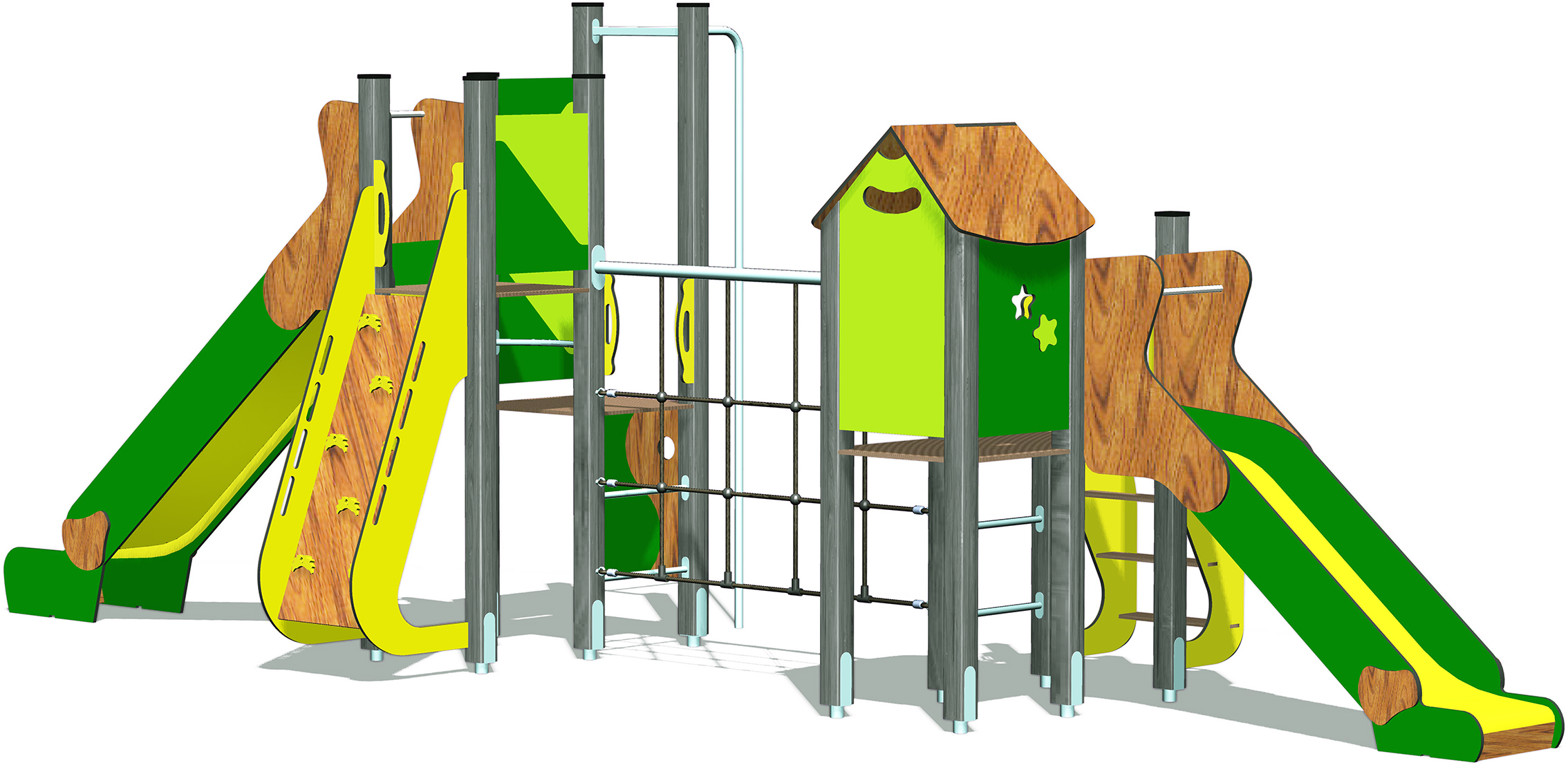 Avec ses couleurs vives, ses matériaux naturels et sa variété d’activités, cette structure de jeu est l’endroit idéal pour que les enfants se dépensent, socialisent et développent leur motricité en toute sécurité. Que ce soit pour grimper, glisser, se balancer ou simplement imaginer, chaque enfant y trouvera son bonheur.
