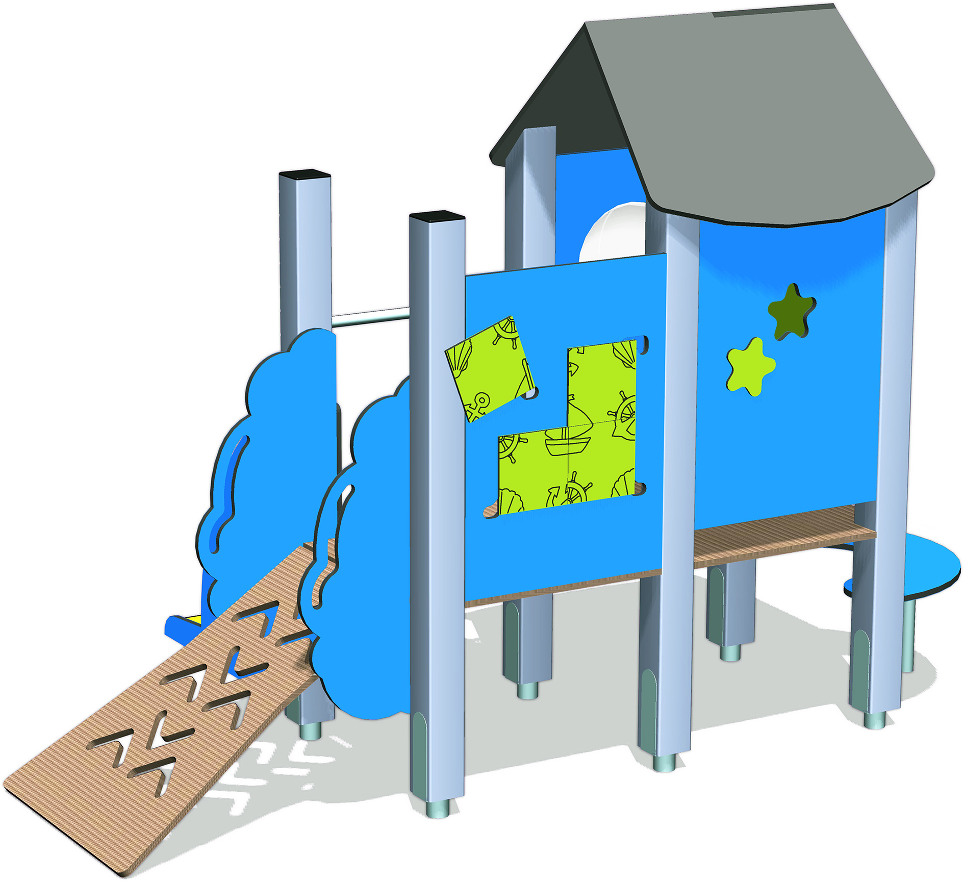 - Ergonomie adaptée : Les dimensions (2,39 x 1,55 x 1,70 m) sont parfaitement proportionnées pour que les petits puissent s’agripper et progresser en toute autonomie.