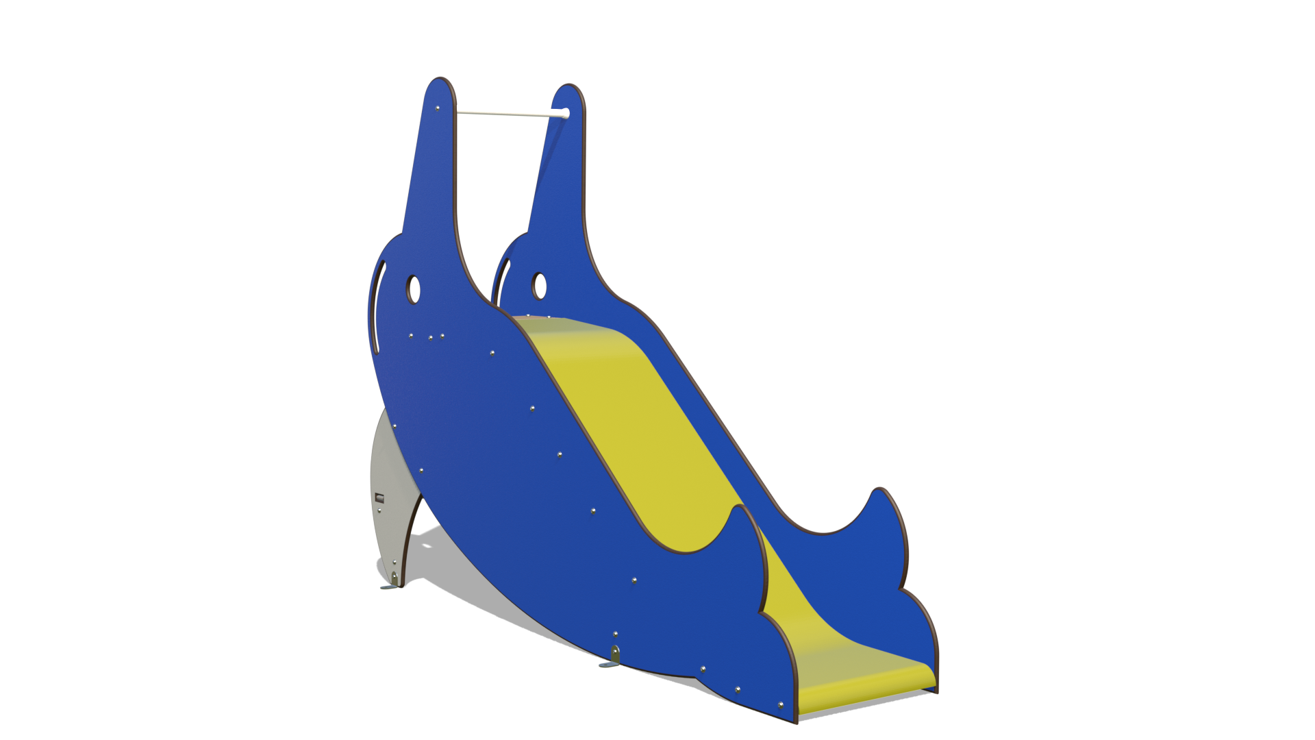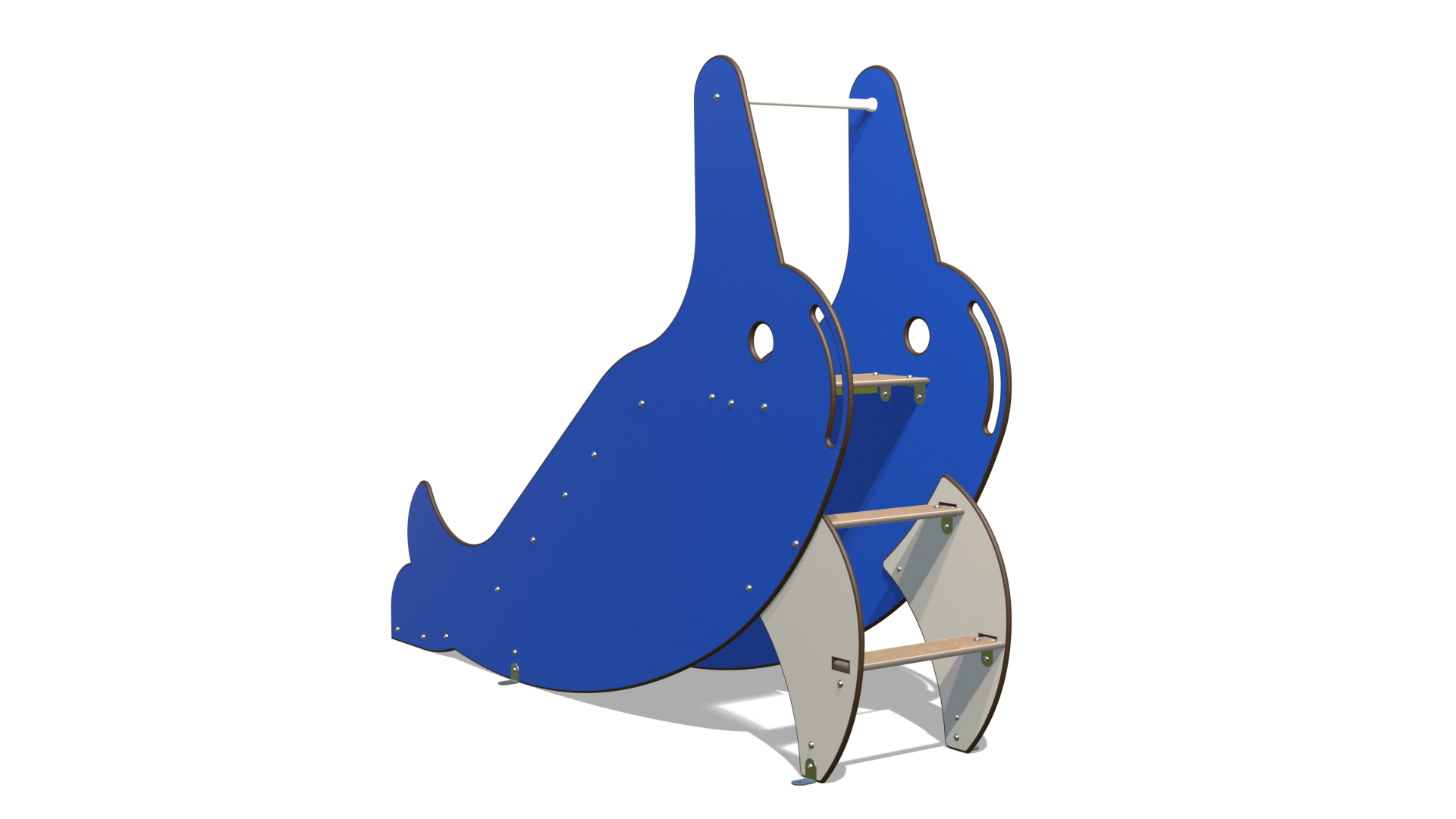 Le design bleu, rappelant un grand dauphin, avec son œil amical, invite à l’aventure. D’un côté, l’accès au départ de la glissade se fait par des marches sécurisées et stables, permettant aux enfants d’escalader facilement vers le sommet, comme pour monter sur le dos d’un géant des mers. De l’autre, c’est la grande plongée : une glissade longue et fluide attend les petits explorateurs pour une descente pleine de rires et de sensations fortes, comme un surf sur l’océan !
