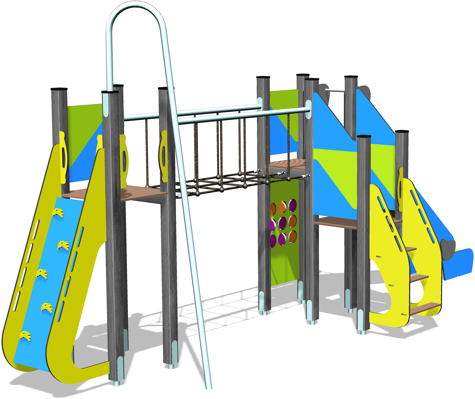 L’ascension des champions : Choisissez votre défi ! Grimpez par l’échelle inclinée pour les plus rapides, ou testez votre équilibre sur le mur de grimpe avec ses prises colorées.