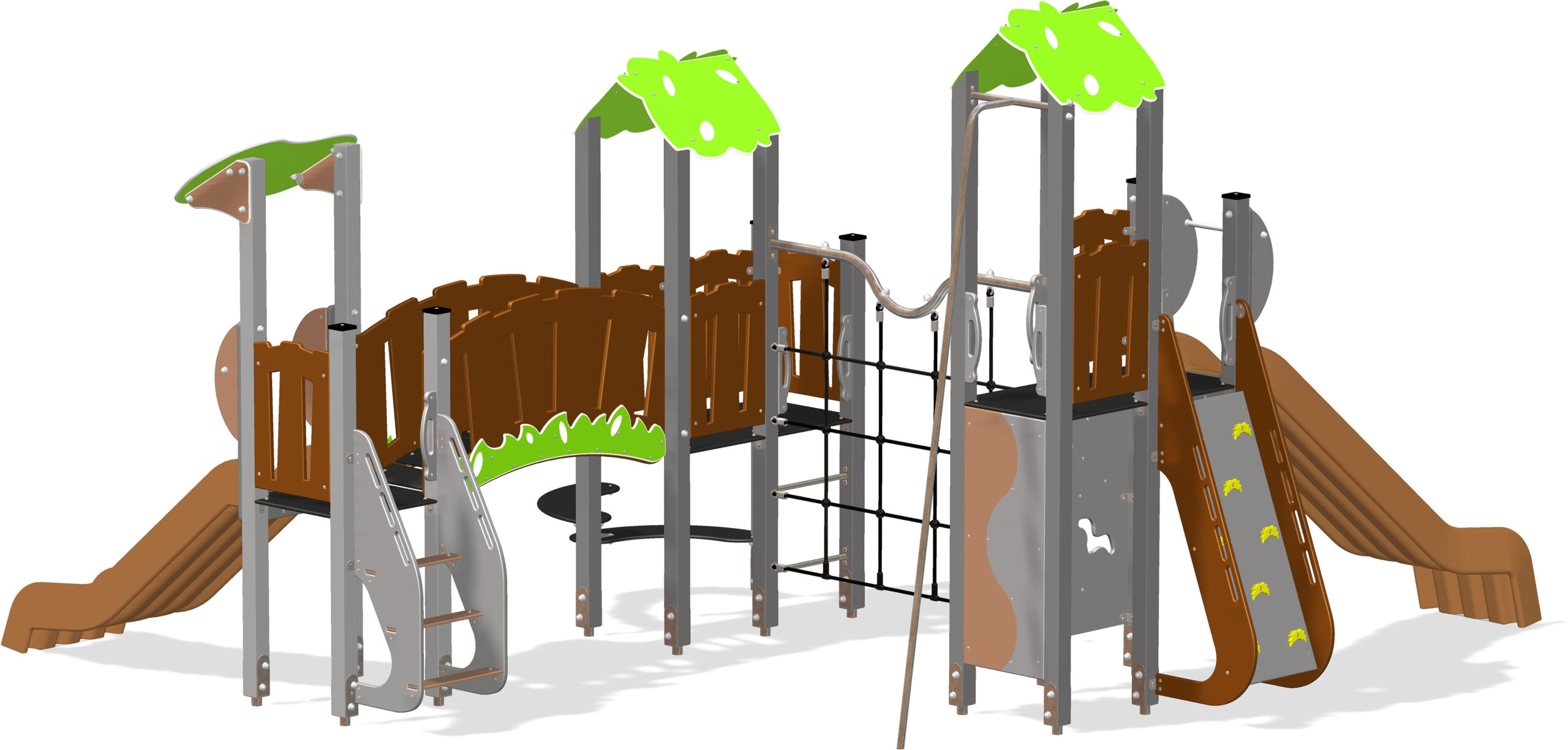 Engagement Éco-Responsable : Poteaux et habillages fabriqués en plastique recyclé, transformant nos déchets en un terrain d’aventure durable.