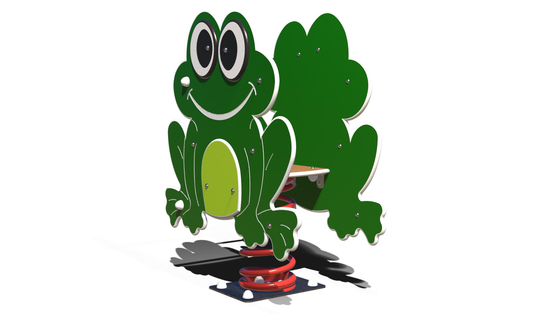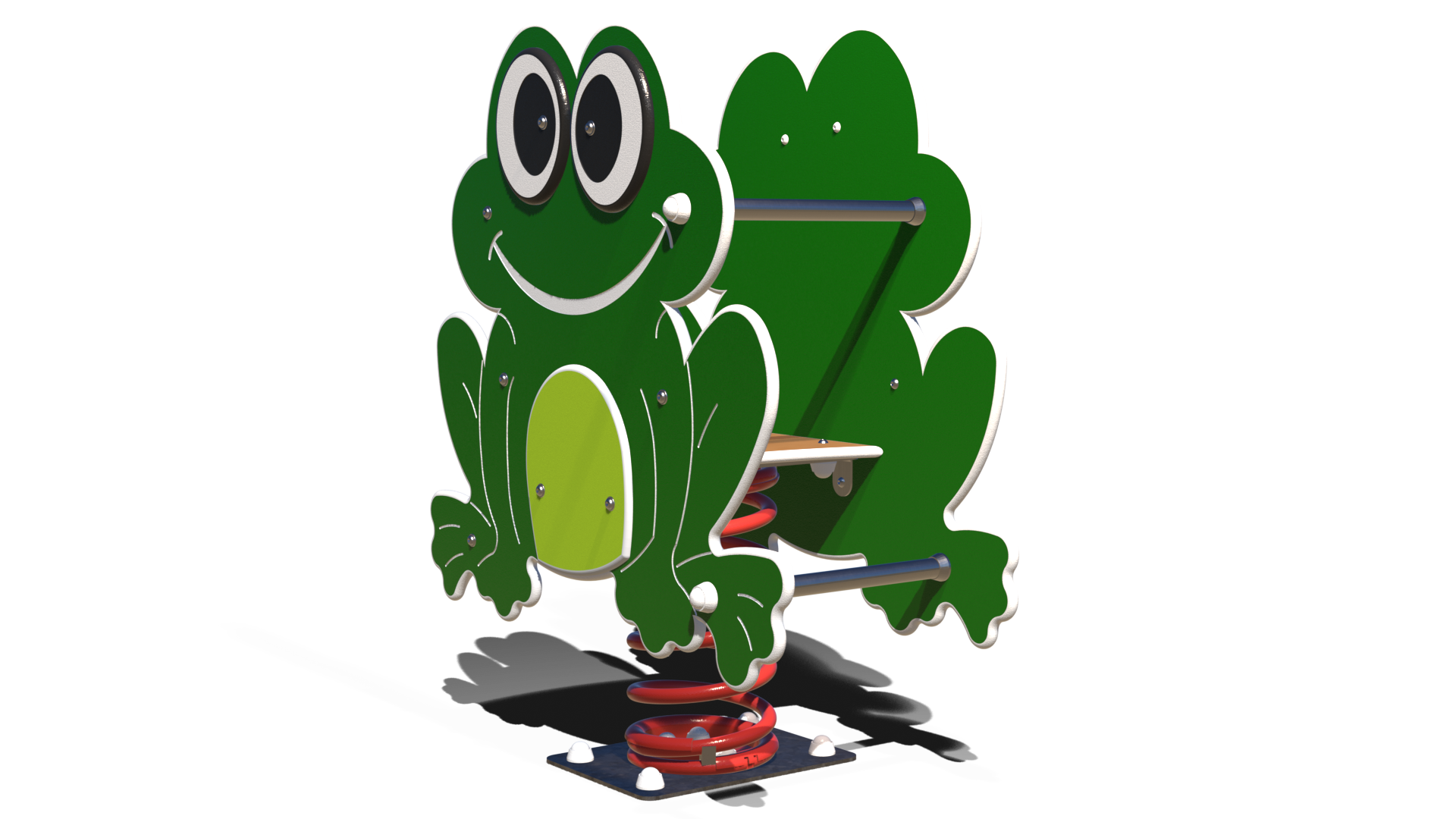 Faites place à la reine de la mare ! Avec ses grands yeux malicieux et son sourire communicatif, Gwennouille-One est prête à faire coasser de rire tous les enfants de l’aire de jeux. Ce jeu à ressort emblématique transforme chaque mouvement en un saut de grenouille dynamique et plein d’énergie.
