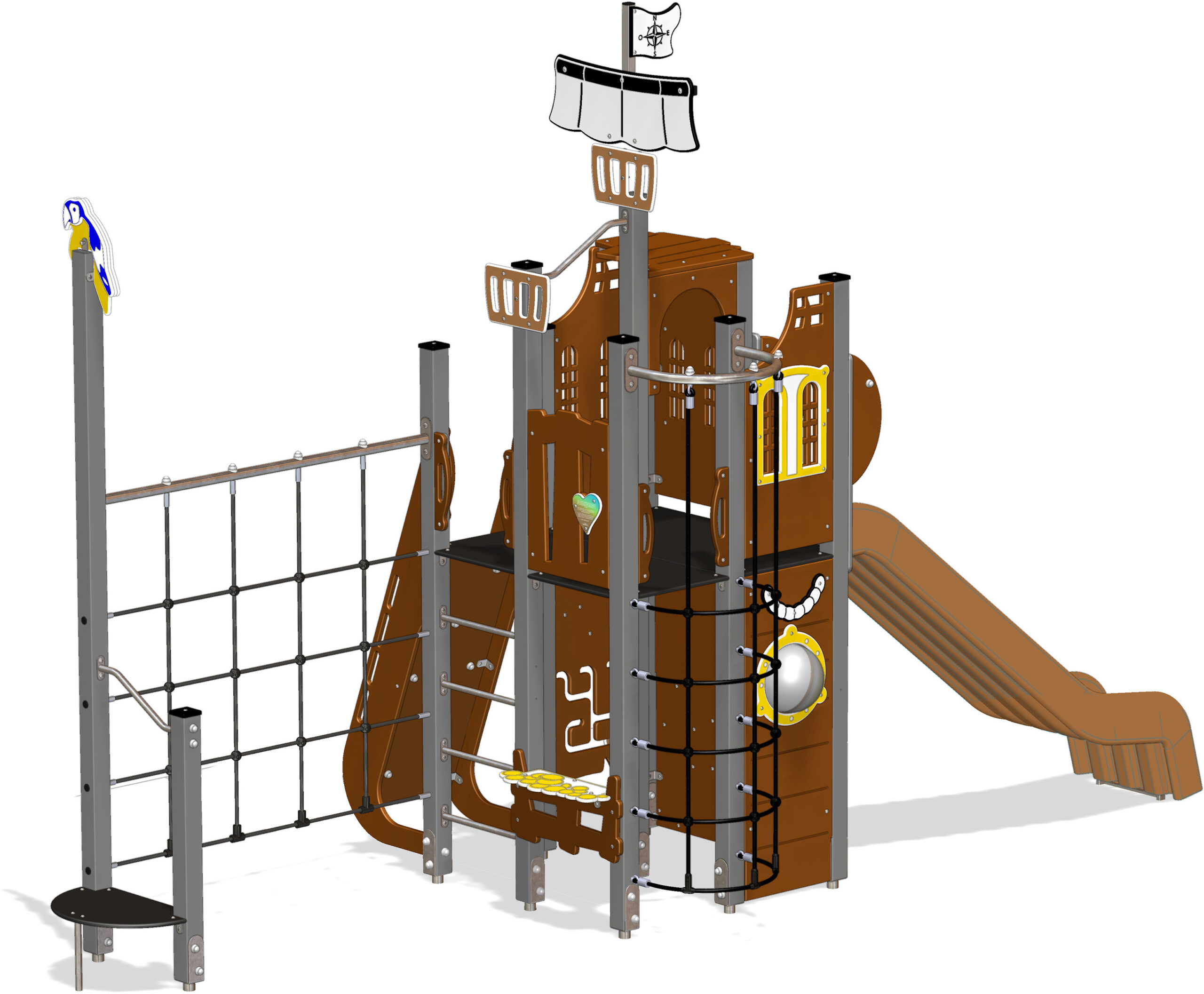 Pour monter à l’assaut du pont, les moussaillons les plus agiles pourront tester leur équilibre et leur force sur le filet d’accès en demi-lune ! Les autres pourront choisir de grimper à l’abordage par le filet d’escalade comme un vrai matelot, ou la rampe d’escalade avec ses prises coco. Pour les plus pressés, l’échelle d’accès te mènera directement sur le pont principal.