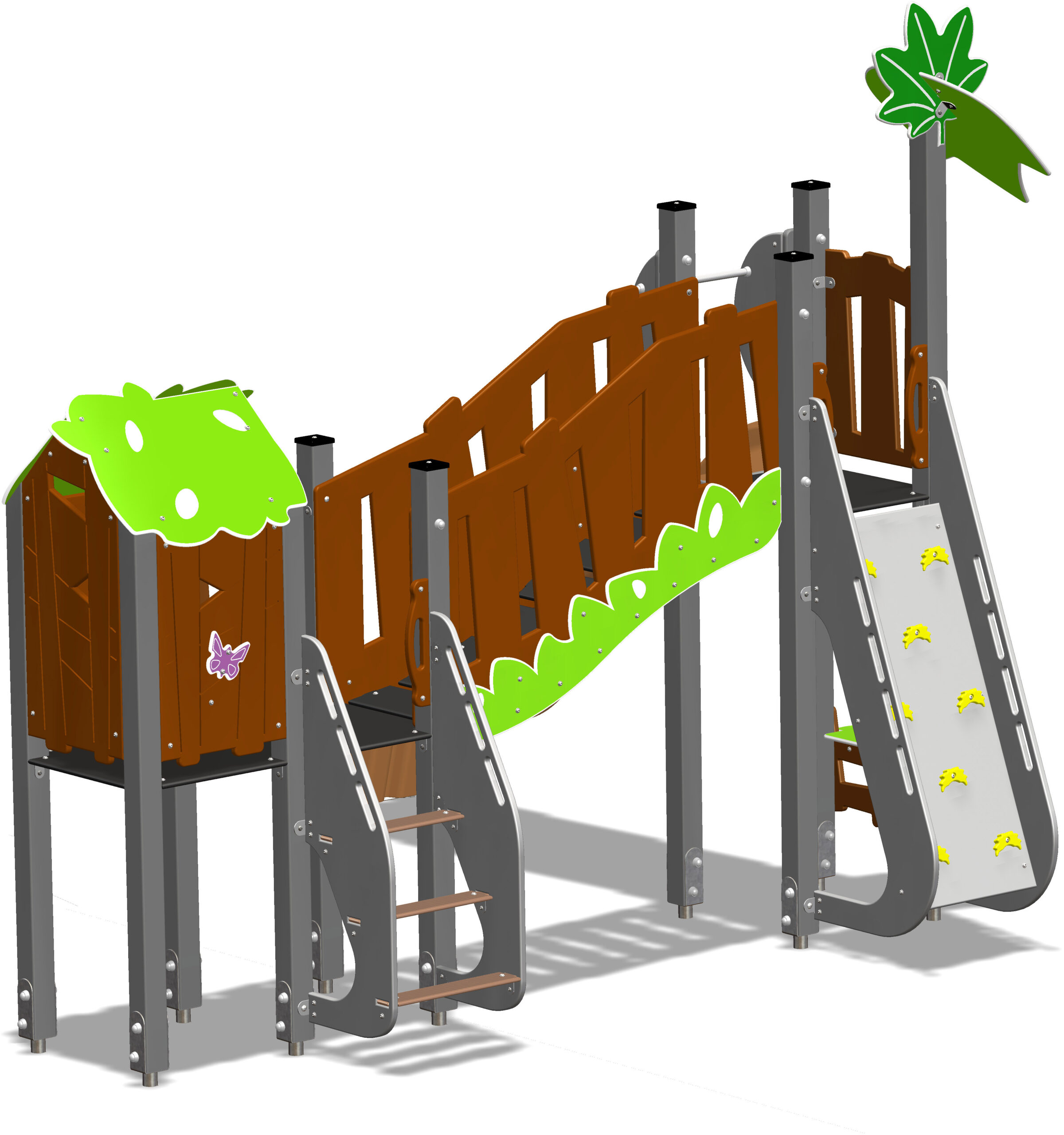 La Maison des Commerces : Montez l’escalier à barreaux pour atteindre une plateforme élevée. Au rez-de-chaussée, l’animation bat son plein ! Devant vous se trouve un comptoir d’épicerie pour jouer au marchand, et juste à côté, les panneaux du fleuriste et de la chapellerie invitent à de nouvelles histoires. C’est le lieu idéal pour faire ses emplettes ou tenir boutique !