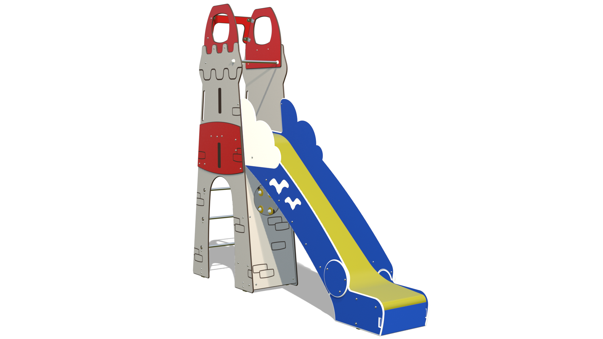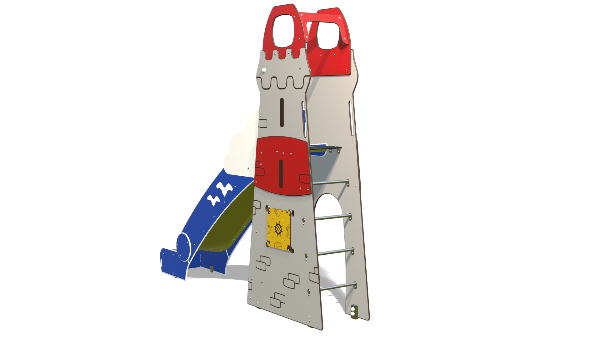 Le PHARANDOLE est bien plus qu’un toboggan : c’est le repère des capitaines et des pirates. Dressé fièrement comme un véritable phare, il domine l’aire de jeux. Les enfants n’escaladent pas simplement une échelle, ils montent « allumer la lampe » au sommet de la tour pour guider les navires. Une fois la mission accomplie, il n’y a qu’une seule façon de redescendre : se jeter à l’eau ! La glissade rapide imite le plongeon spectaculaire dans une mer imaginaire.