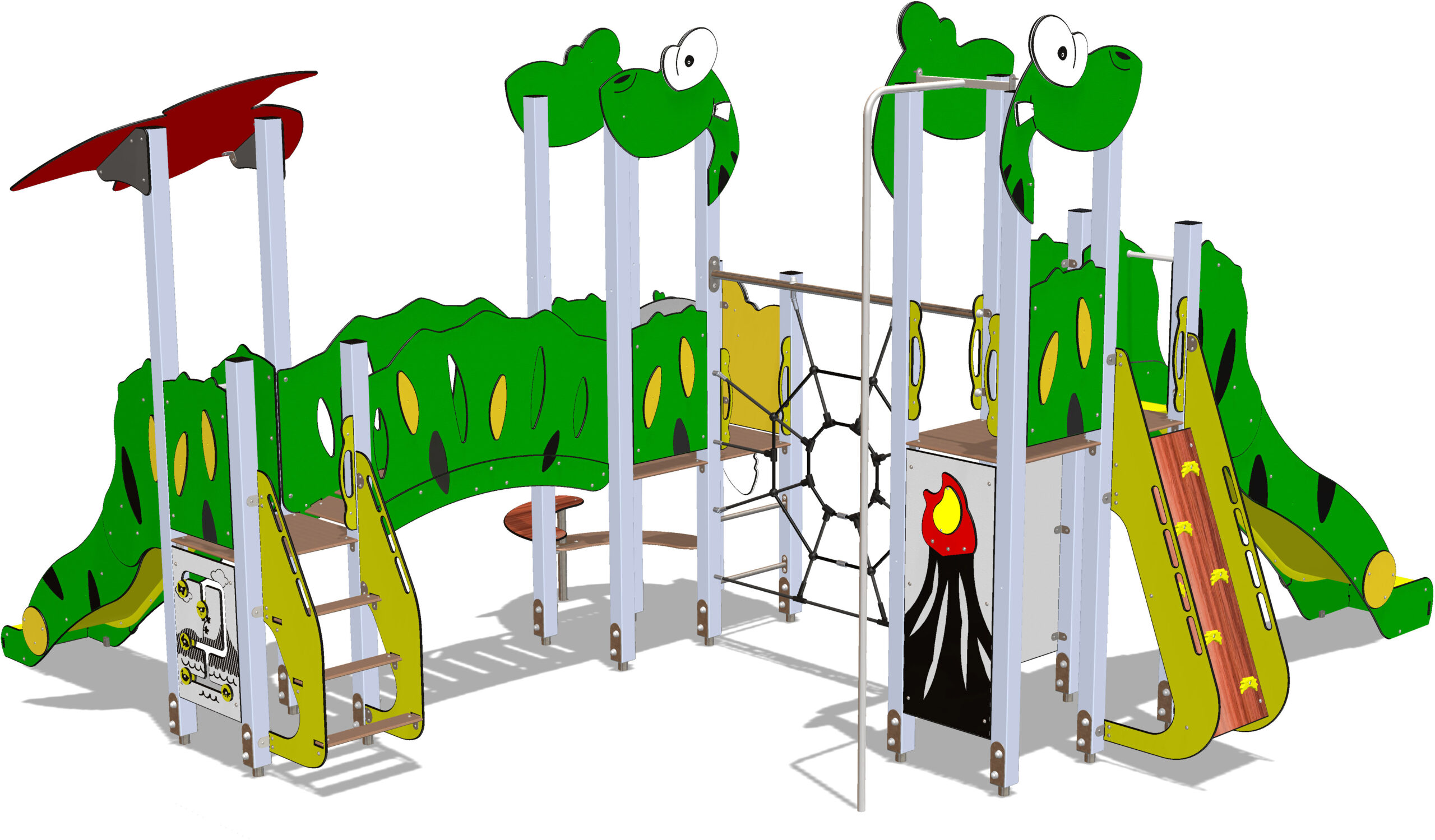 Préparez-vous à un voyage de 65 millions d’années en arrière ! La structure KKS 1443 est une aire de jeux immersive monumentale qui transforme les enfants en véritables paléontologues en herbe. Entre T-Rex, ptérodactyles et œufs de dinos, cette structure géante est le clou du spectacle pour tout parc ou camping souhaitant offrir un effet « Waouh ».