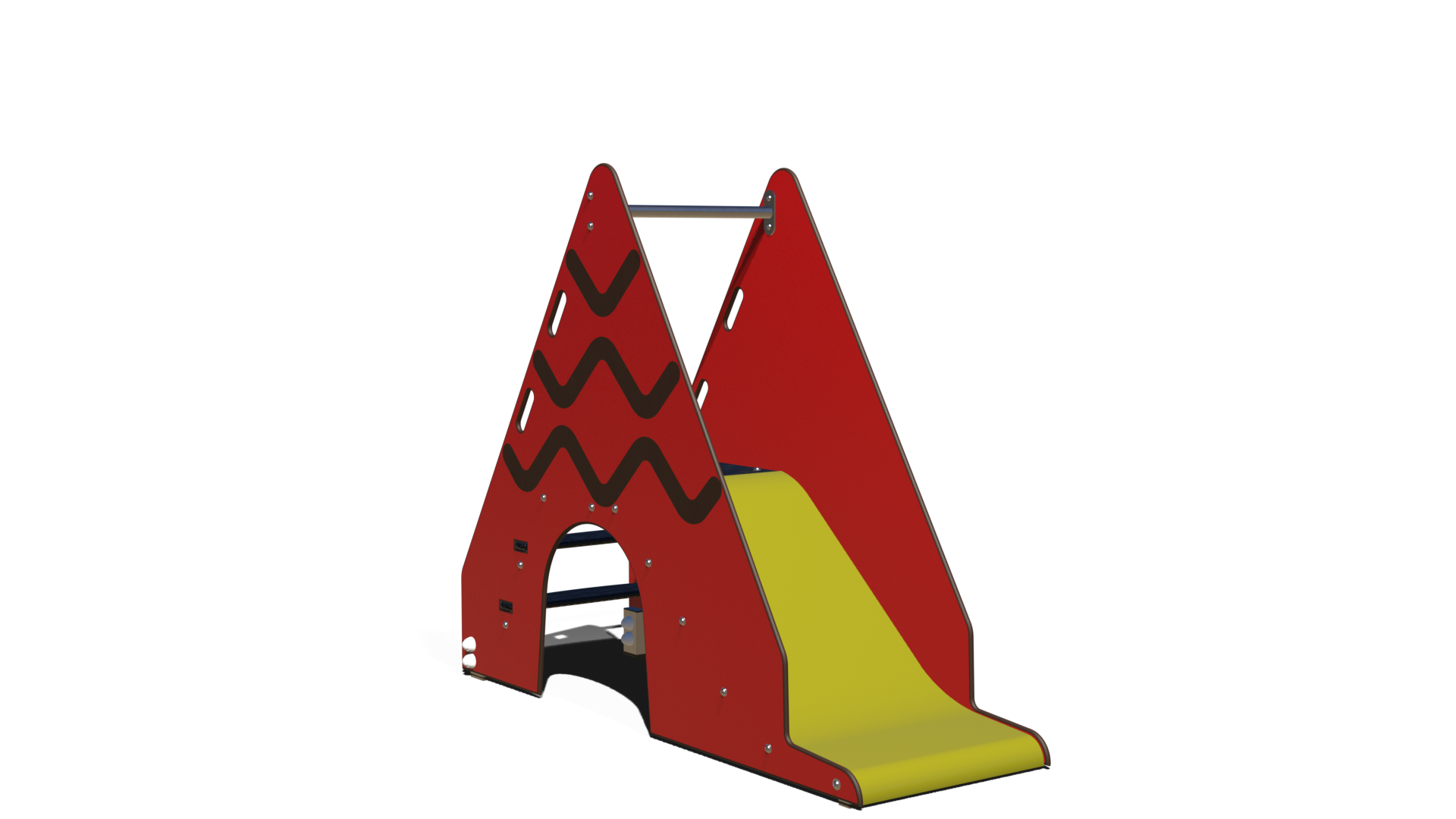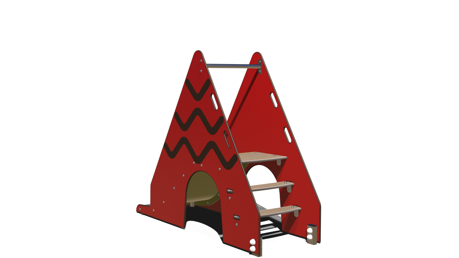 Présentant une forme de tente ou de tipi, cette aire de jeu compacte offre un parcours d’escalade facile d’accès