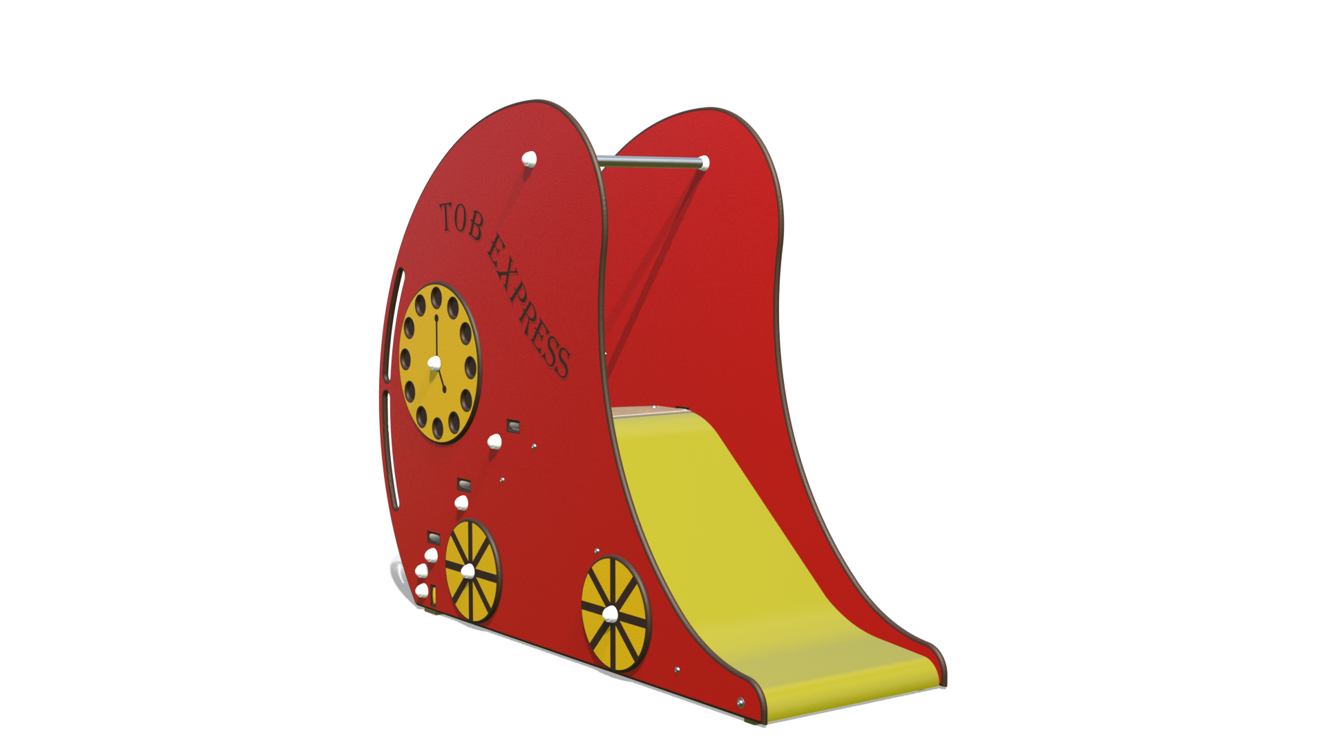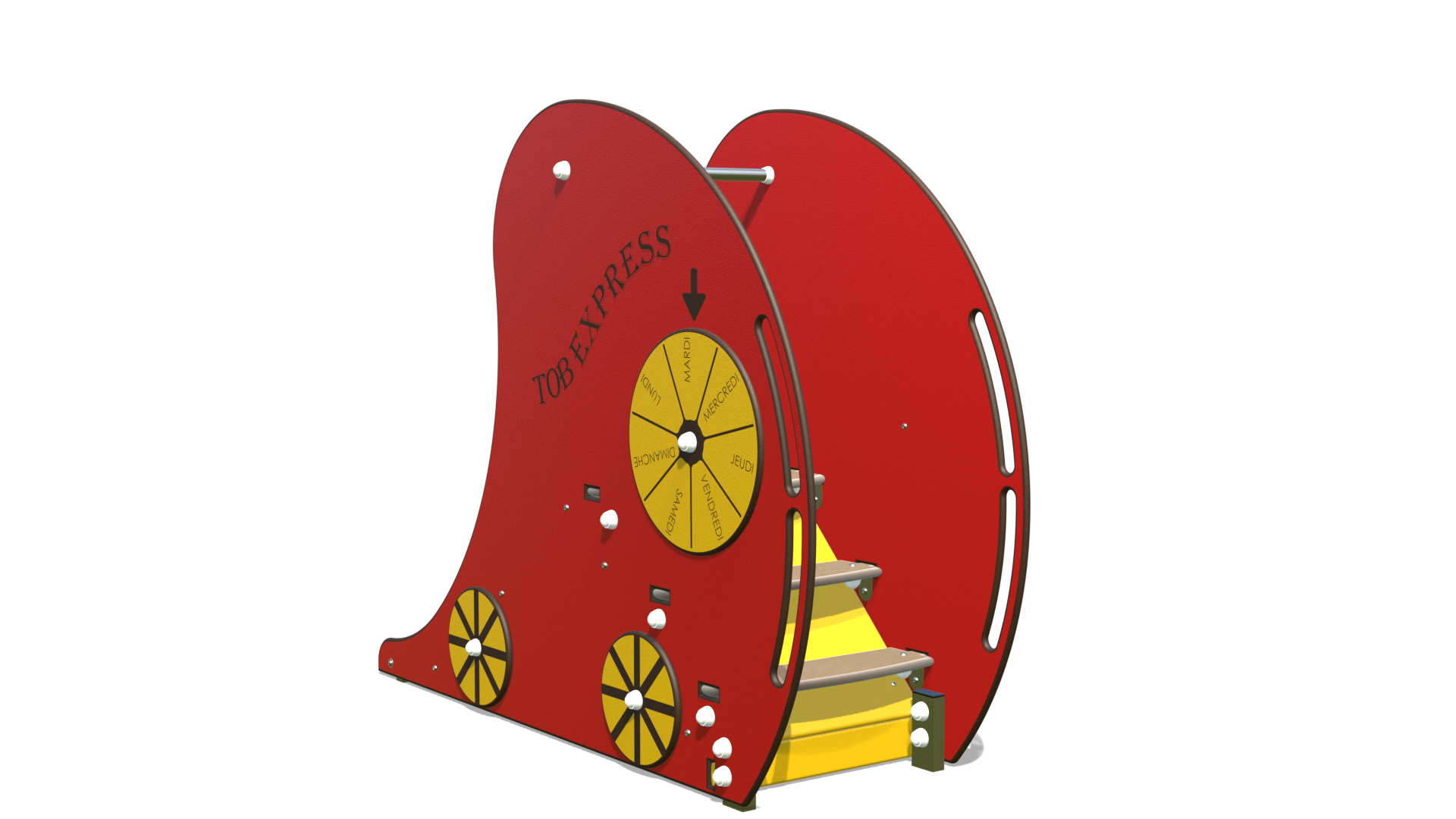 Avec son design évocateur (roues, horloge de gare et cadran des jours pour ne jamais se tromper de jour de jeu !), ce toboggan stimule l’imagination et encourage les enfants à créer leurs propres scénarios de voyage. Offrez une structure de jeu qui allie sécurité optimale, durabilité et un thème passionnant pour des jeux qui traversent le temps. Avec le « TOB EXPRESS », l’ennui est toujours en retard !