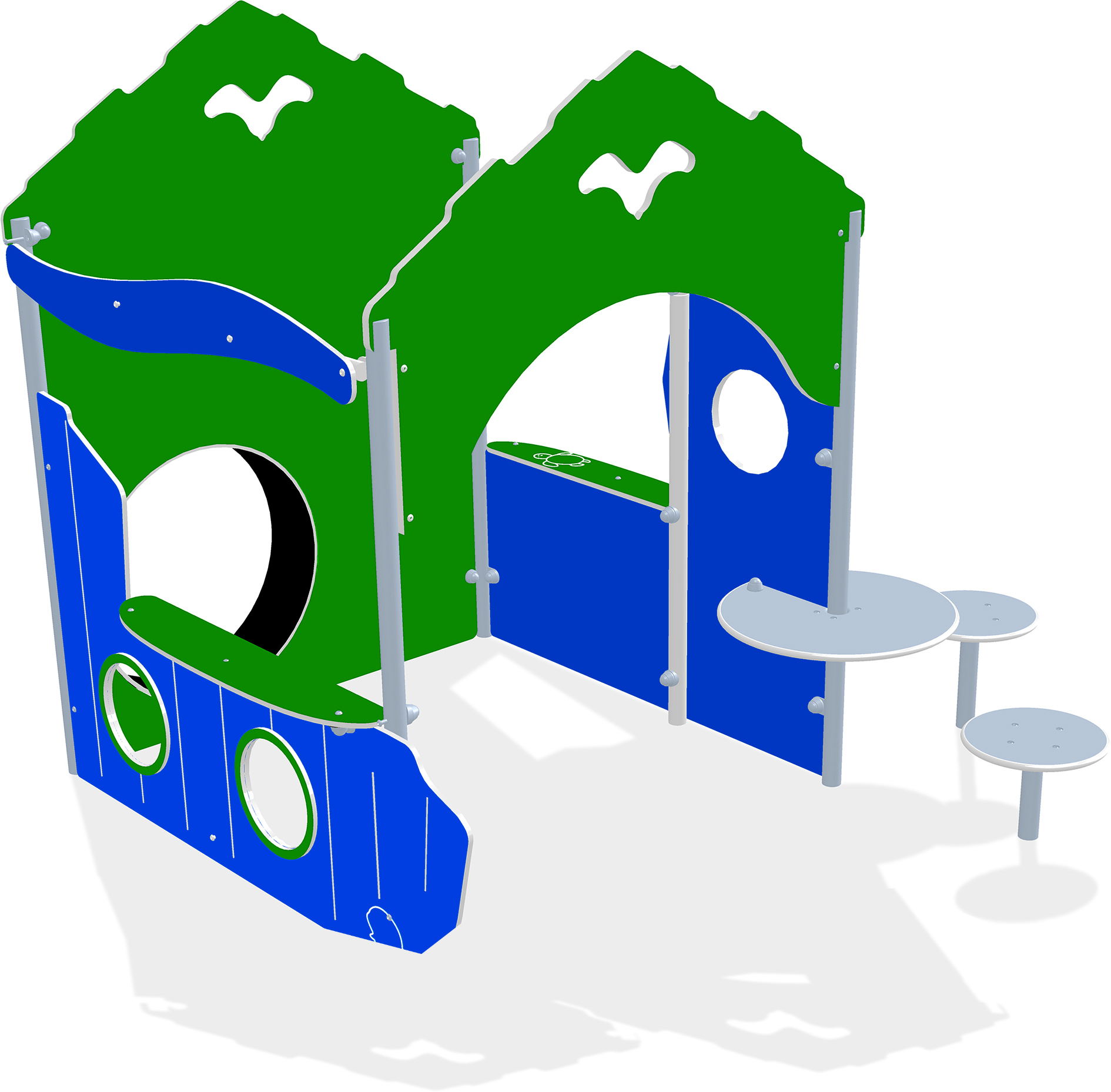 Cette cabane de jeux, sur le thème marin, est une invitation à l’imagination. Avec son allure de repaire sous-marin et ses couleurs vives, elle stimule la curiosité des jeunes explorateurs. Les enfants peuvent ramper dans son tunnel noir, s’amuser à travers le hublot et, surtout, se lancer dans une chasse au trésor amusante grâce à un jeu de « cherche et trouve » intégré. Des petites tables attenantes complètent l’ensemble pour des pauses ludiques ou des jeux de rôle. C’est l’endroit idéal pour de grandes aventures imaginaires.