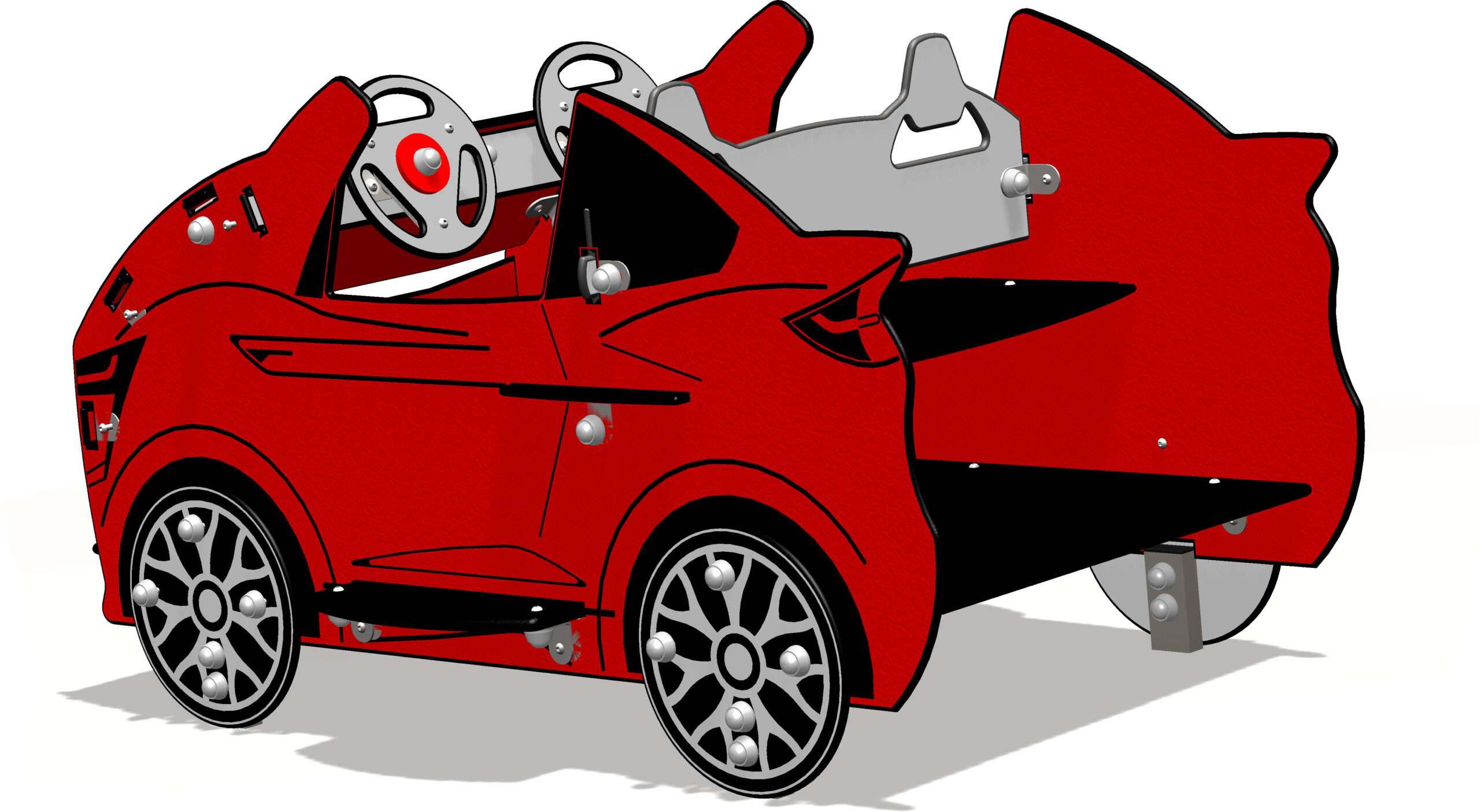Son design aérodynamique, ses jantes stylées et ses deux volants invitent les enfants à s’installer et à imaginer des courses endiablées. Qu’ils soient pilotes ou copilotes, les petits bolides peuvent explorer des mondes imaginaires, se lancer dans des missions secrètes et vivre des aventures palpitantes