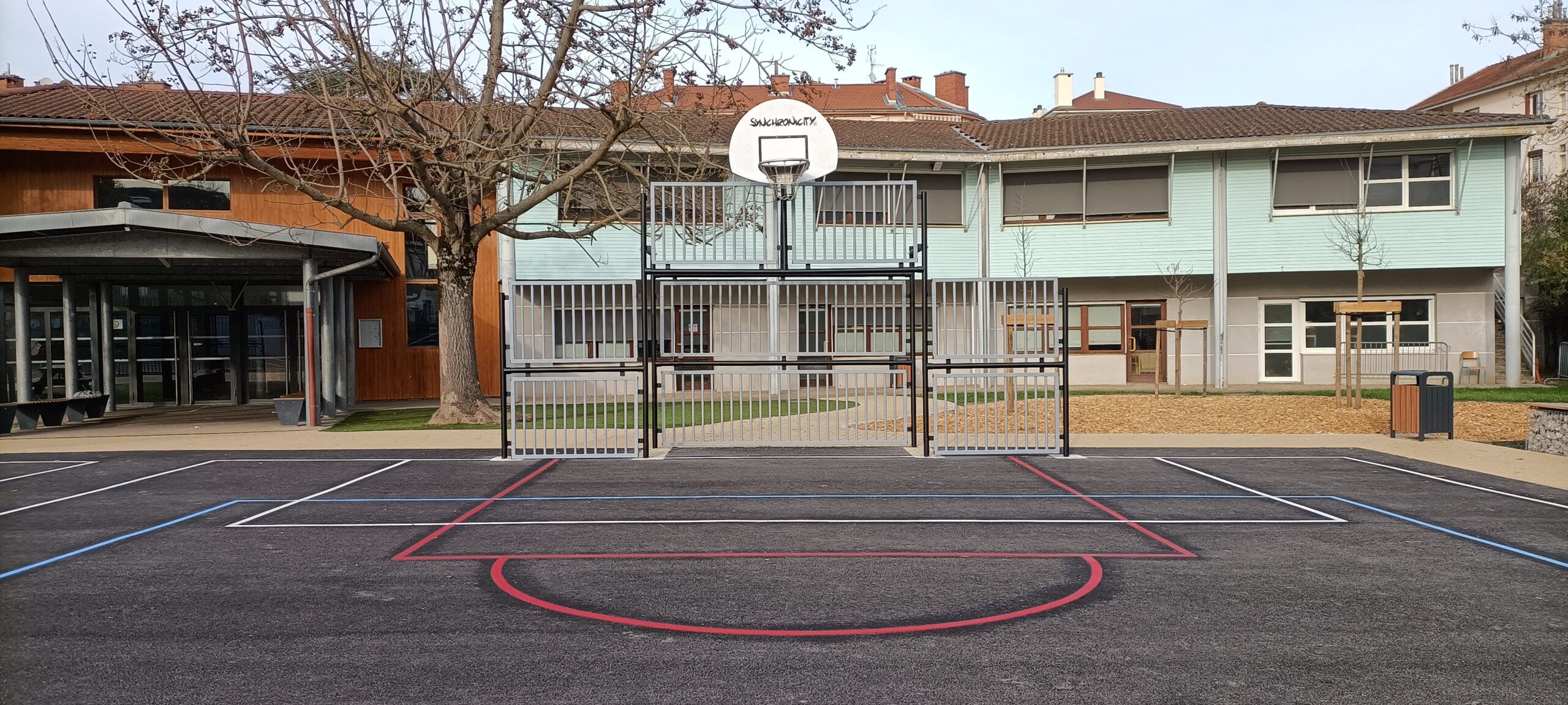 – Polyvalence : un espace conรงu aussi bien pour les cours d’EPS que pour les temps de rรฉcrรฉation.